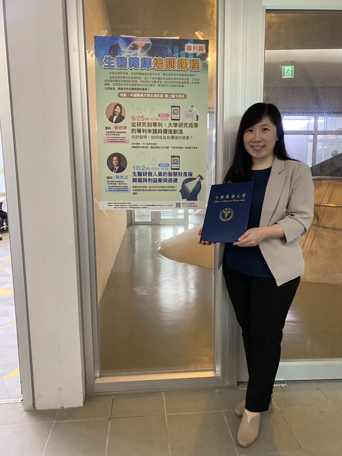 本所管妍婷專利師於中國醫藥大學的「生醫轉譯培訓課程」擔任講師,